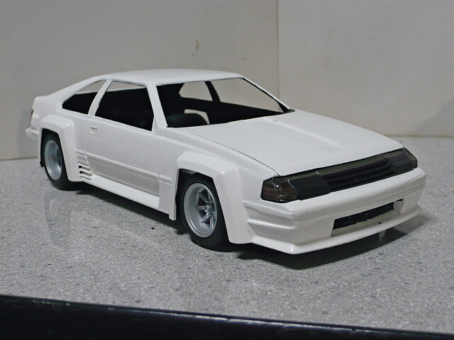 フロント側はストラットに棒を接着してホイールの回転に干渉しないよう