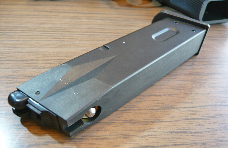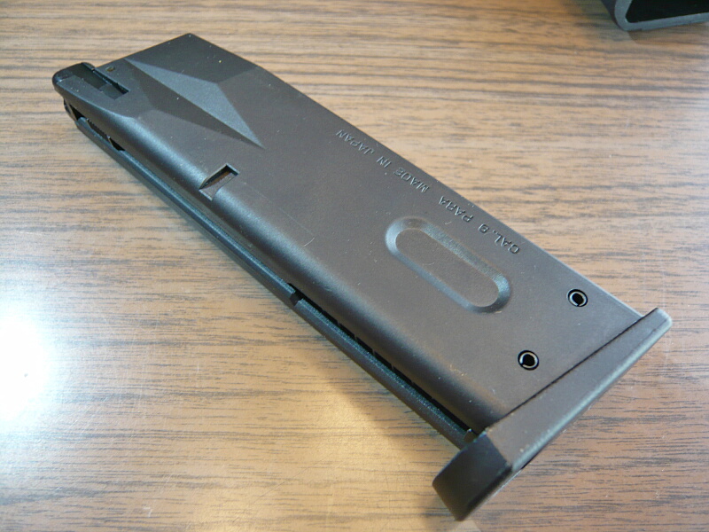 亜鉛合金製で特有の色やカタマリ感があるので本来のスチールプレスとは印象が大分違うのですが、その代わり連射で冷えたマガジンを温める際に手などの熱が伝わりやすいメリットがあります。