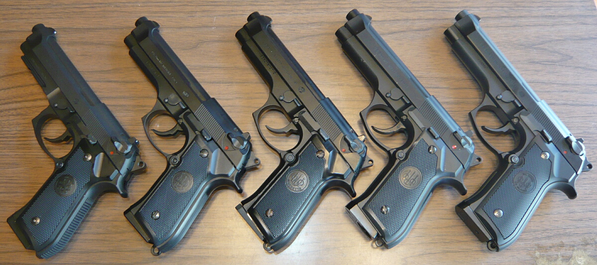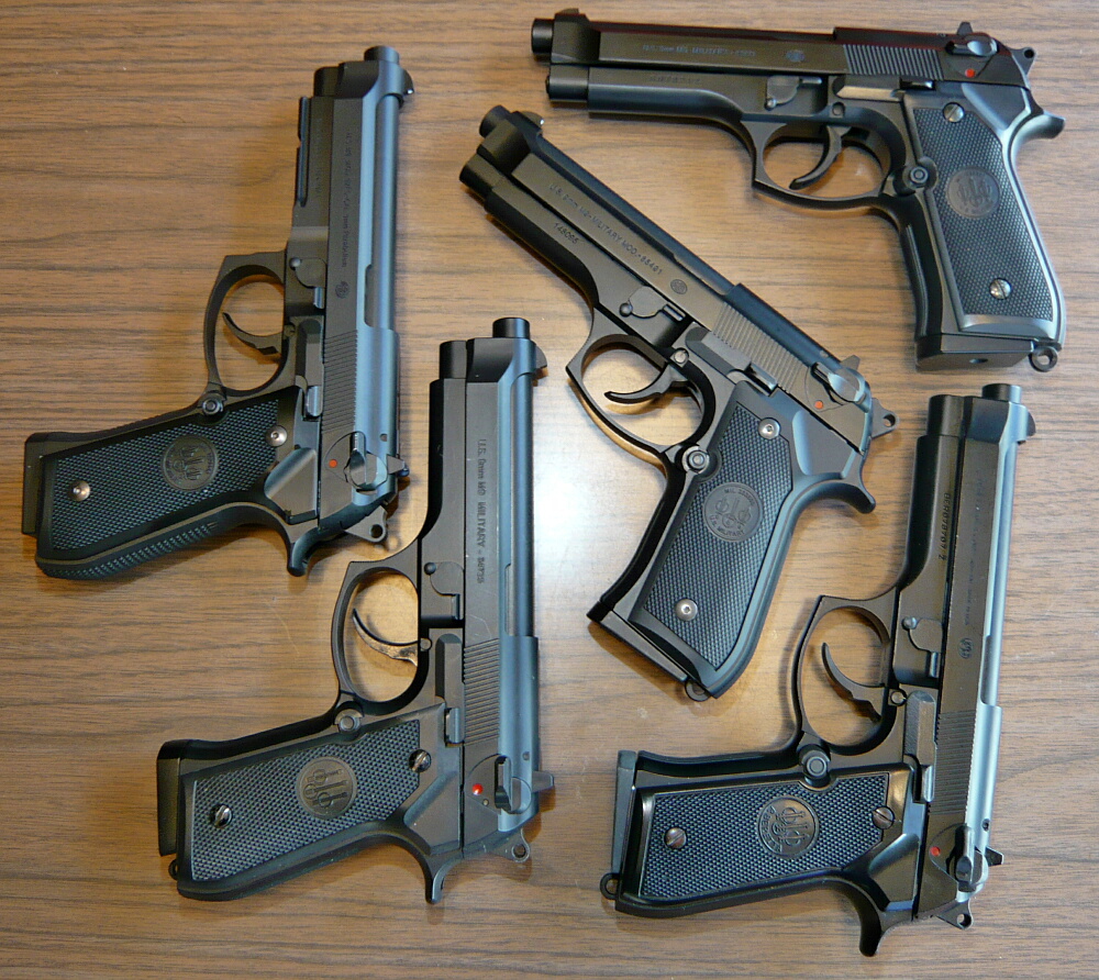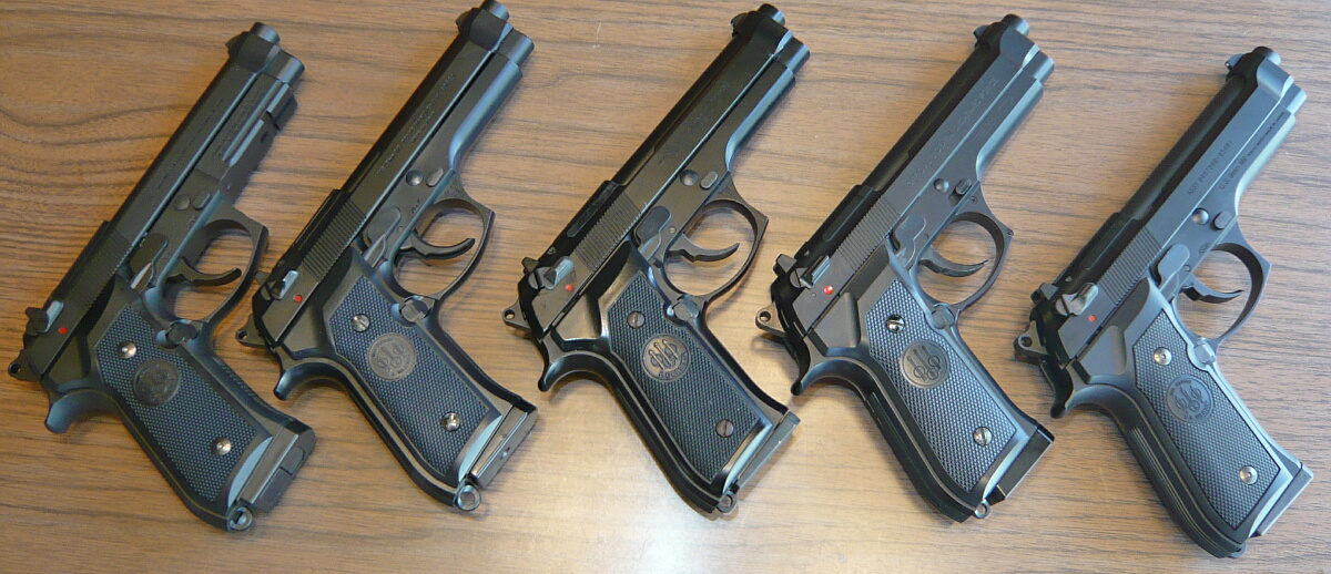 M92F系トイガン5種。写真だとどれがどれだか見失いそう。