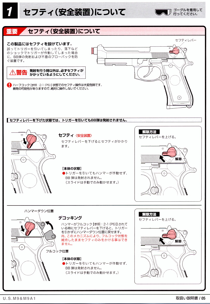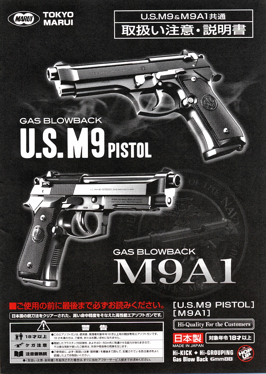 マルイからは長らくM92Fがラインナップにありますが、これはデコッキング機能が省略されているし固定ホップと少々陳腐。しかし数年前にデコッキングも可変ホップも装備してリニューアルされた「M9A1」が発売されました。
