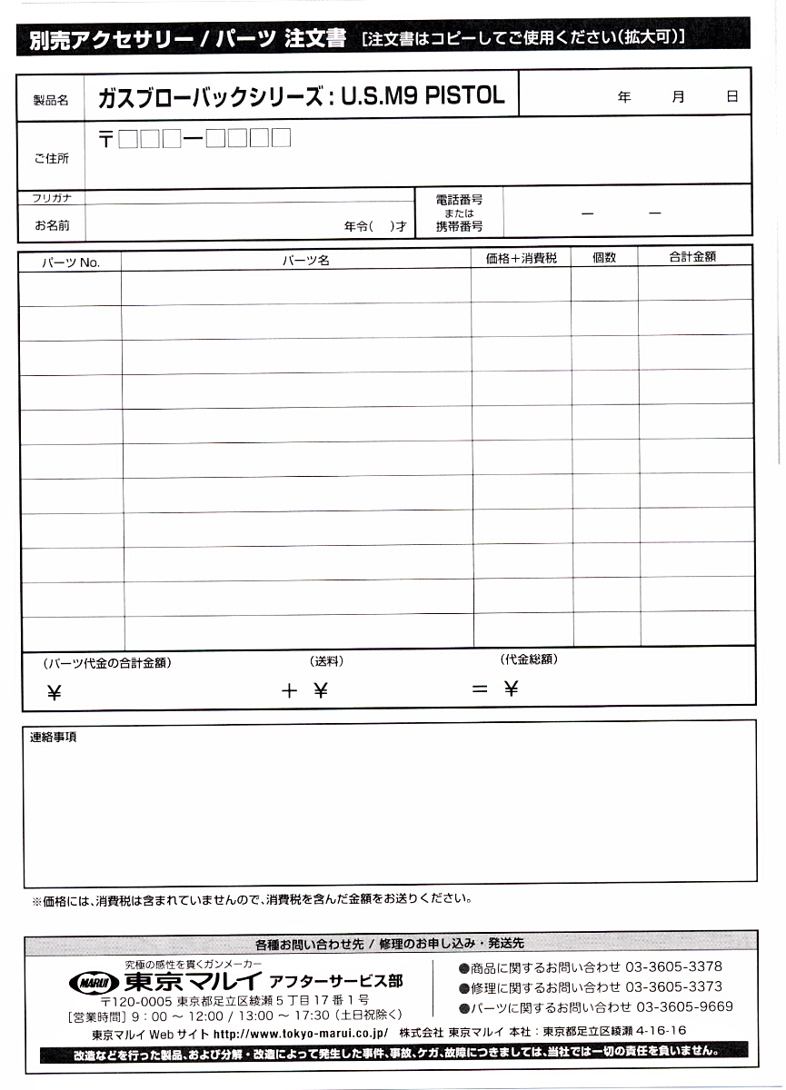 もう一つ、パーツ注文書。パーツリストはこちらに書かれています。