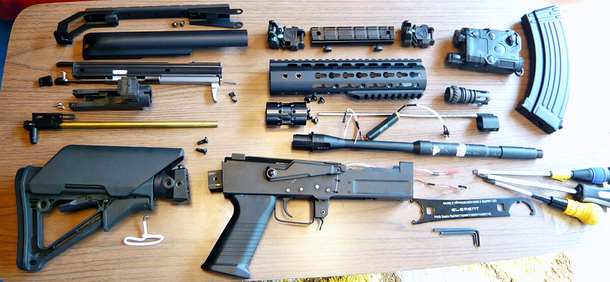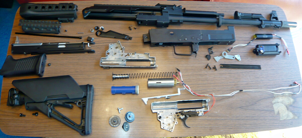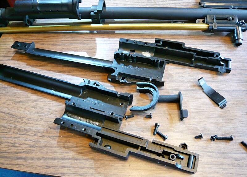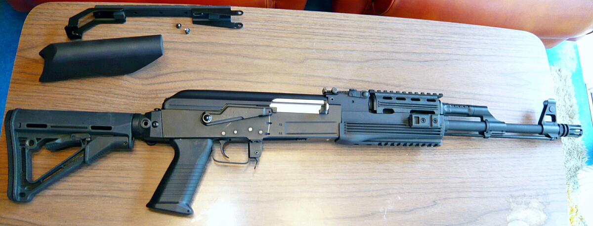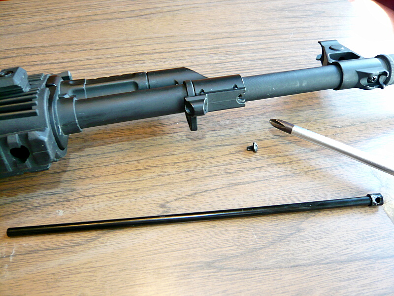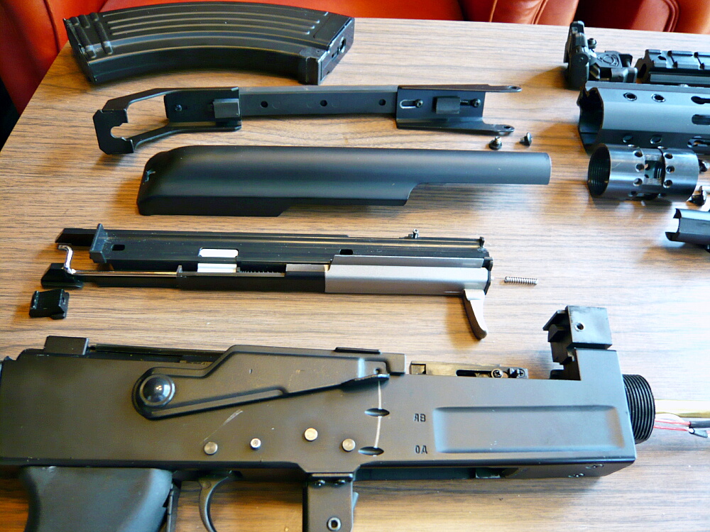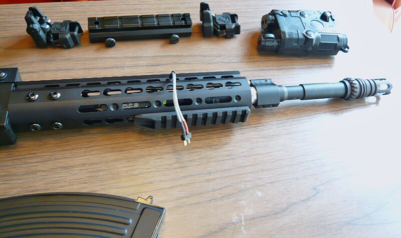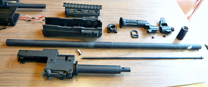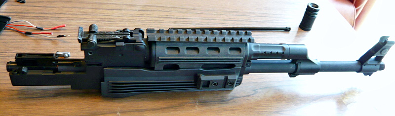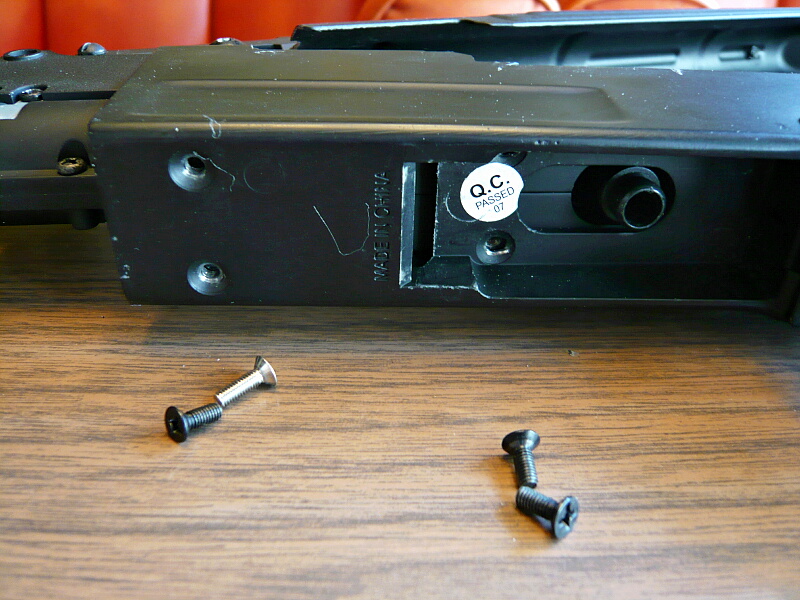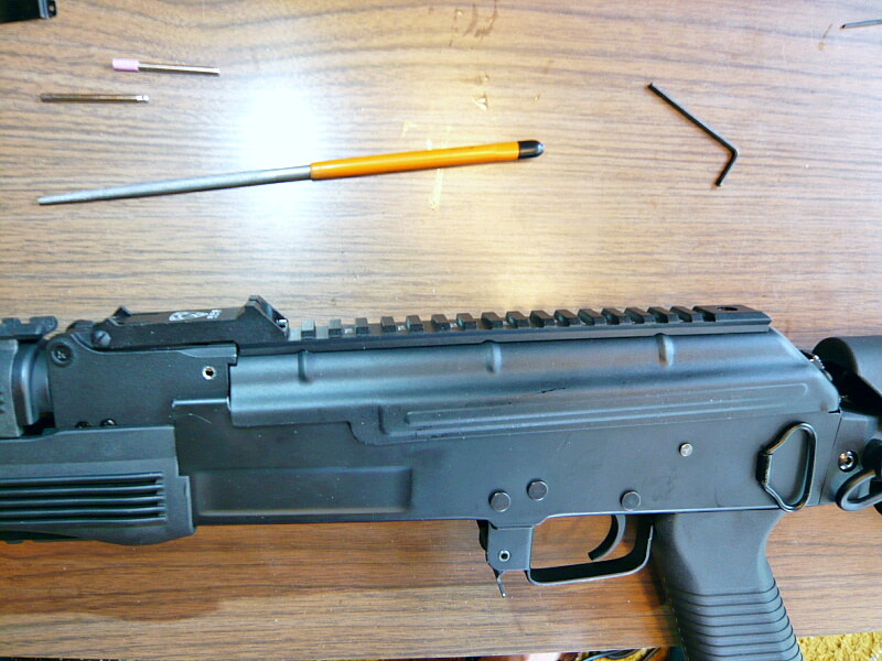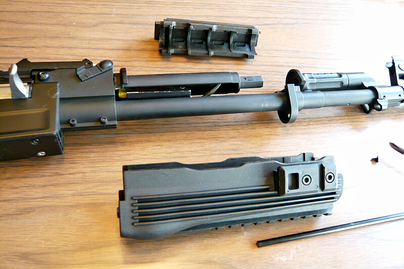 さて元のフロント回りを。何か長いですがアウターバレルとクリーニングロッドをPDIのロングタイプに換えていました。換装してしばらくはRPK風でご満悦だったのですが、CYMAからカッコイイRPKシリーズが安価で発売されてしまうと、見比べてバレルがブルバレルじゃないので「細ッ、ショボ…」となってしまい一気にテンションダダ下がりに…