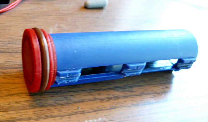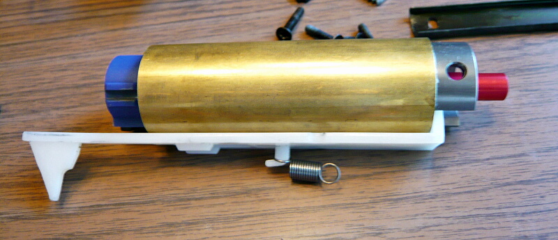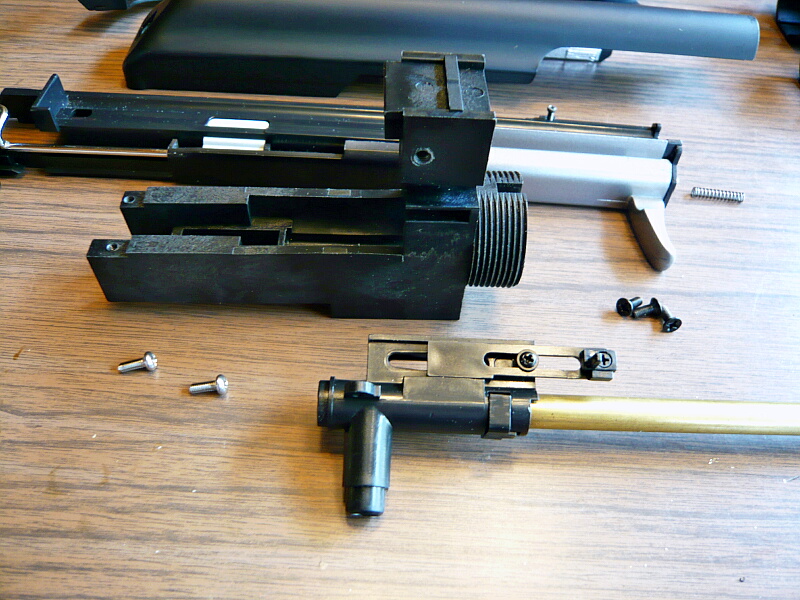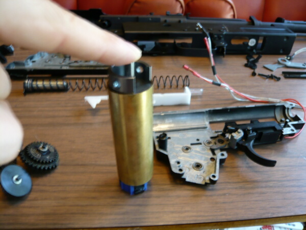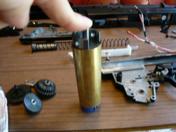 バレル内径が広くなるので短いインナーバレルではアウターバレル内でインナーバレル先端がブレてしまうので長い標準のものに戻します。いやインナーバレル先端外周にアルミテープでも巻いて埋めてやればいいんですが、ハイサイクルカスタムをしたのに結局大したサイクルにならなかったため、短い事のメリットがなくなってしまったので…