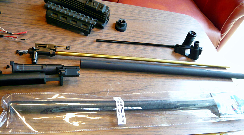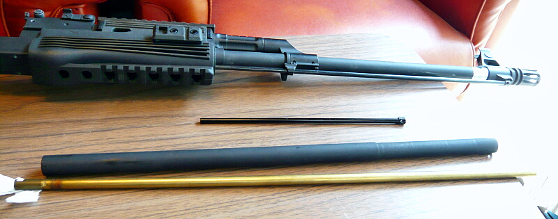 元々付いていたアウターバレルとインナーバレル、クリーニングロッドも引っ張り出してきました。クリーニングロッドはハンドガード前端に先っちょだけ差し込むだけなのでこの長さしか元々ありません。