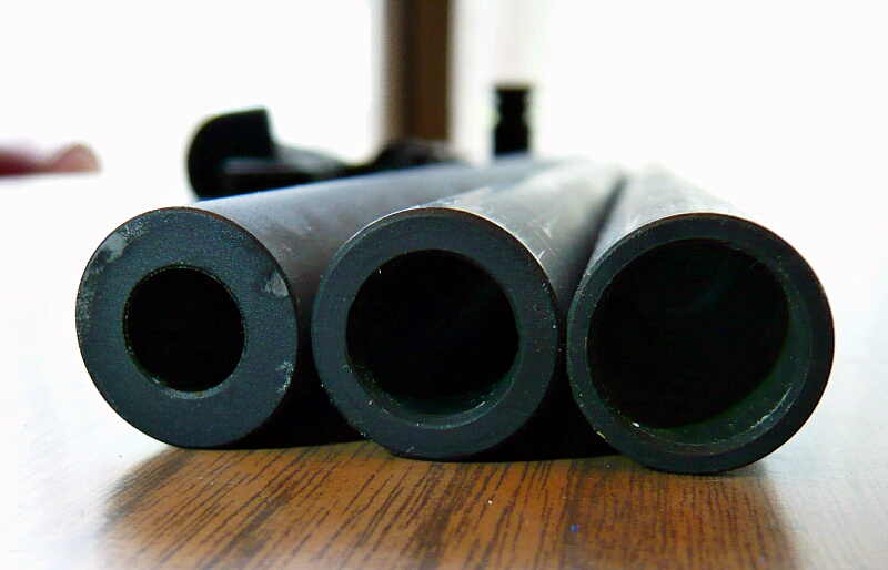 バレルの厚みの比較。左がPDIロングタイプ、中が標準、右がG&P。