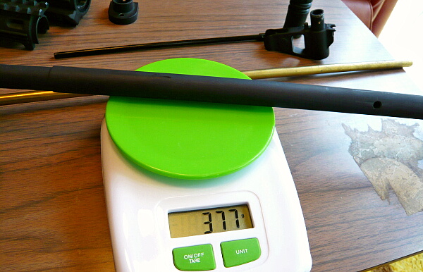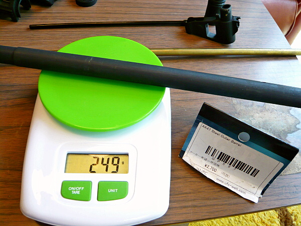 標準のバレルはスチール製で377g。AKはフロントヘビーなのでバレルの重量は結構重要な部分ではありますが…