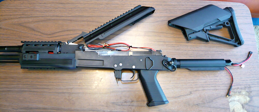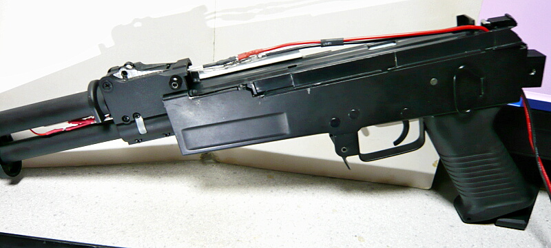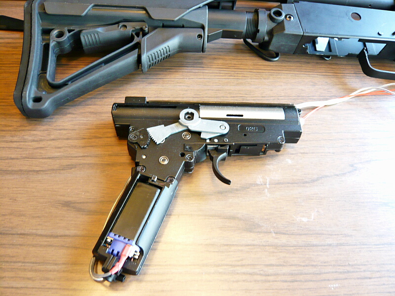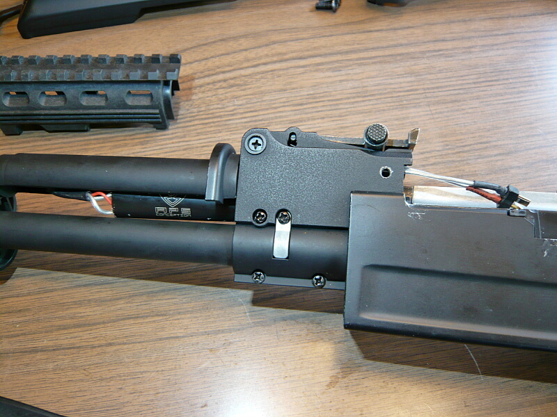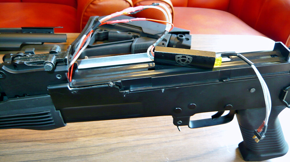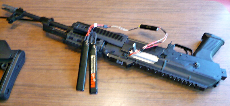 ストックは後にして、撃てる状態にします。バッテリーを繋ぎ、ちゃんと動作する事を確認。