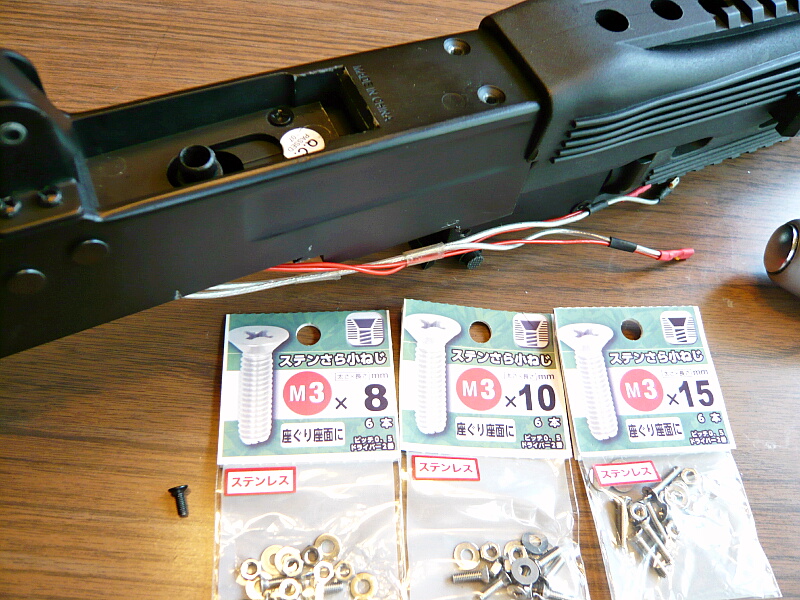 一か所だけ銀色に輝いていて何だかな…気になるなら黒く塗ればよし。M3の皿ネジはメカボックスのネジの補充用としても有用なので持っておきたいもの。