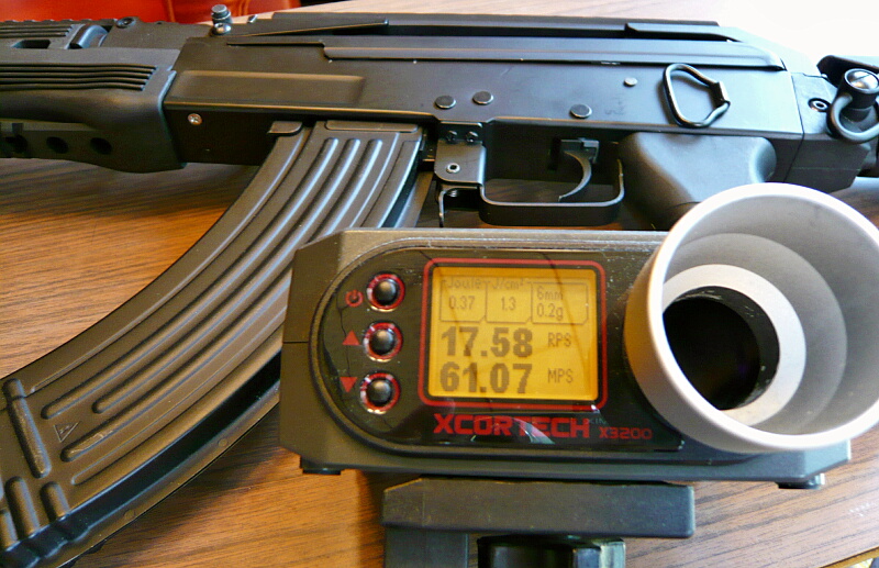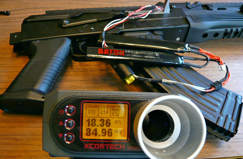 初速とサイクルチェック。サイクルはバッテリ―が違うので参考程度ですが17.6→18.4と微増、初速は60台前半→80台前半に回復。ピストンやシリンダー周りの他チャンバー周りにも気密が怪しい部分があるのでその辺り詰めていくと初速は上がってゆくでしょうが、このくらいで十分かな・・・