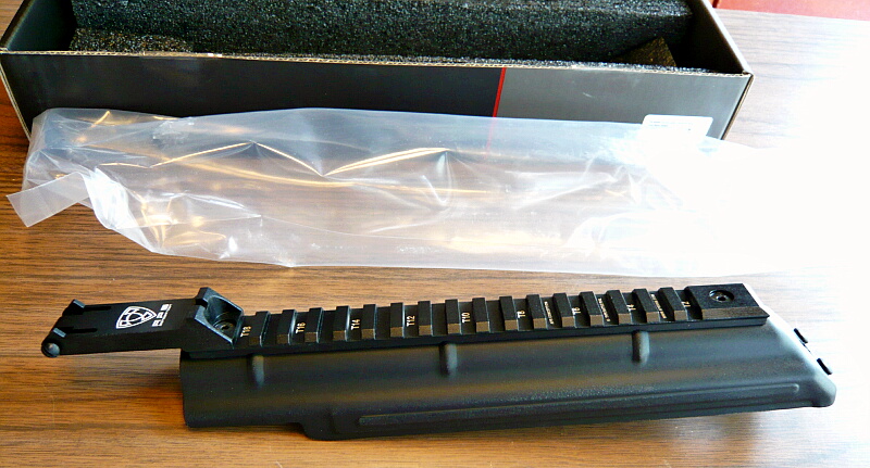 トップレイルを取り付けたところ。元々このフォルムが標準状態ですが、トップレイルはレシーバーを上に大きくしてしまうのでストックが低い位置に付いているように見えてしまい、あまりフォルムが美しくないのが惜しい。