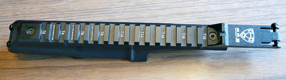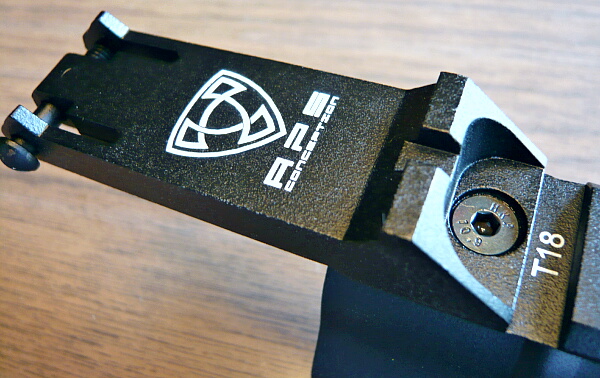 左側の刻印。レイルの付いた無骨なA1とは違い、スマートなダストカバー部。ここへオプション品を付ける機会が無い人も多いでしょうが、無いと困るという人はA1にしましょう。