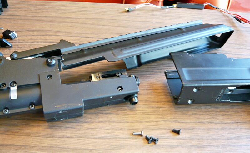 レシーバー周りを組みますがこの銃はメカボックス上の樹脂製のカバーが小さいネジ1個だけで固定だとか、配線が噛んで中々定位置に来なくて嫌な部分。おまけにFETがでかくて工夫しなけりゃいけないのも忘れていました。こんなデカイのをトップカバー内に配置していたらバッテリ―を収めるスペースがありません。
