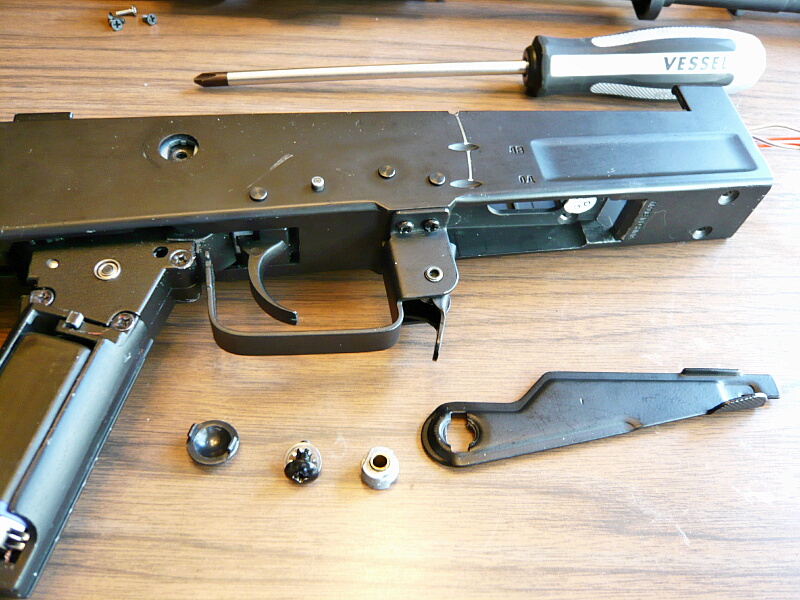 右面に乗っているセレクターパーツを外し、トリガー後ろにあるカバーも外します。