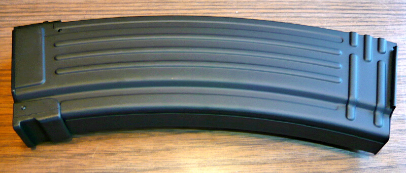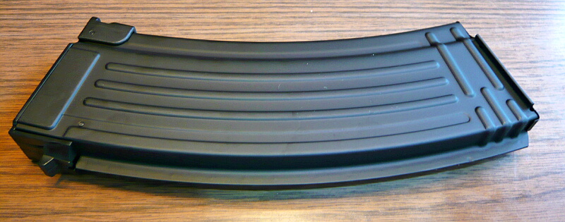 AK74のマガジンというとベークライトな黄土色の樹脂製マガジンですが、AK47やAKM用のようなスチールプレス製のものもあります。