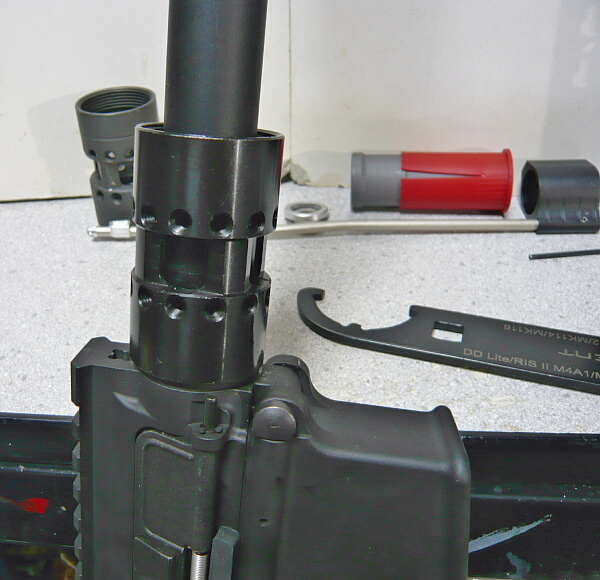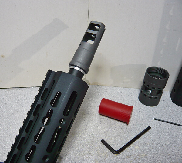 ハイダーを取り付けて出来上がり。ハンドガード前端はハイダーのちょっと後ろまで伸びています。