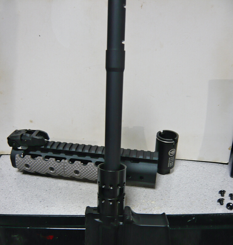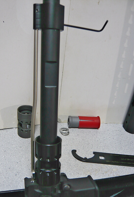 ハンドガードを外します。こちらはガスブロック&ガスチューブはオミットしています。フリーフロートRASならガスブロックもガスチューブもただの飾りだし・・・