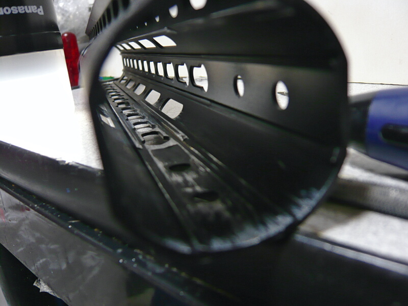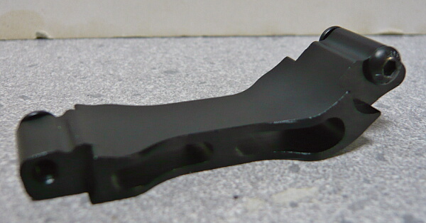 材質は多分アルミ製、下側へ湾曲した形状で、左右に少し幅増しされている他、横方向に肉抜き穴があります。
