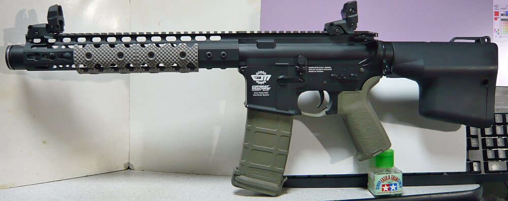 ちょっと面倒臭かったけど、どうにか完成。KeyModハンドガードは細いのであまり長いのもどうだろうと思ったけど、銃の前端近くまであった方がカッコイイかも。個人的な感想です。