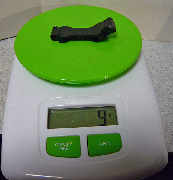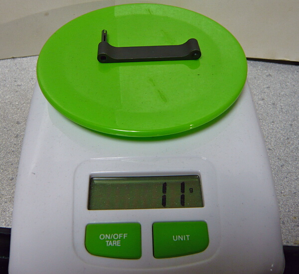 付属の金属製は多分亜鉛合金製で28gあるのに対し、この樹脂製のものはたった6g。