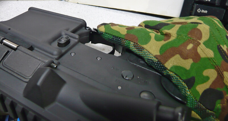 リヤサイト下のトンネルに入る太さなので余裕はたっぷりありますが、配線が絶妙に邪魔をする。