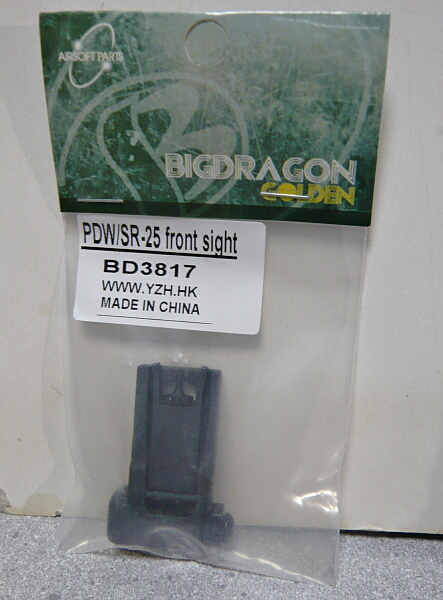 というわけで調達したのがこちら。BIG DRAGONのPDW/SR-25 front sight。SR-25用?大丈夫なの?と思ったけどPDWともあるので要するにコレ単に商標の問題から「ナイツタイプ」と書けなかっただけ?