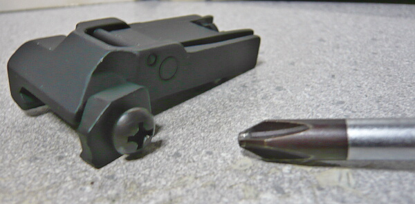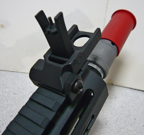 フリップアップタイプなので起こしてフロントサイトとして利用します。適度なクリック感があり、照星も回して上下調整ができるようになっています。照星の調整はロックもちゃんと付いています。