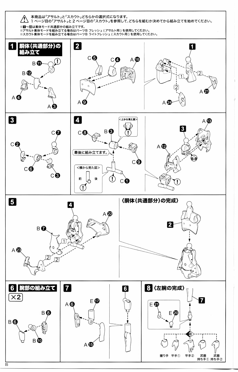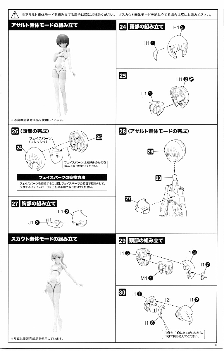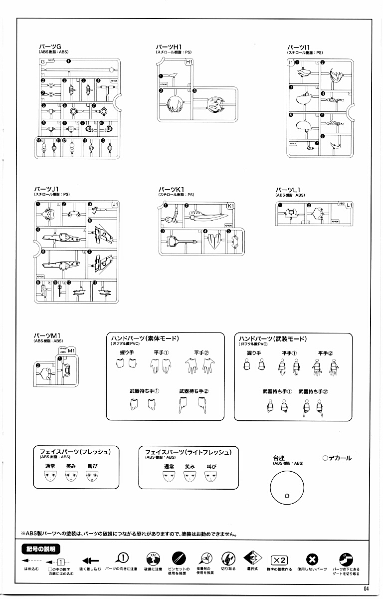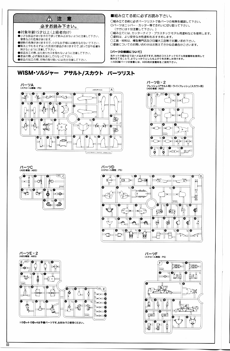 パーツBの一方とM1は同じ肌色でスカウト用、もう一方のBとL1は黄色系の肌色でアサルト用。共にABS樹脂製。