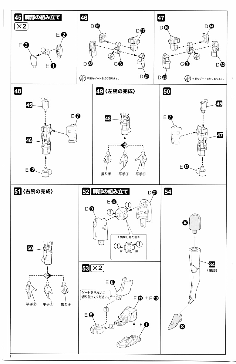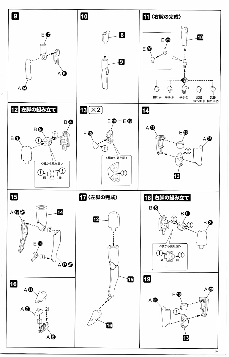 手首が思ったほど曲がらなくてポロリしやすいのがちょっと残念。FAGマテリアでもここが割れやすかったのを認識してか手首の関節パーツは予備が多めに付属しています。