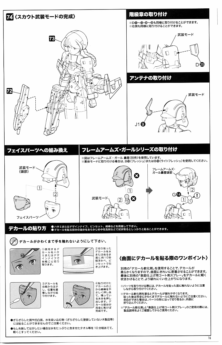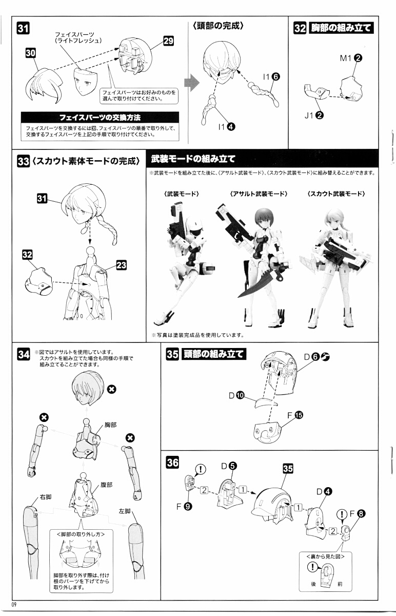 首から上を生身スカウトに。アサルトより髪パーツの構成が少し複雑になっています。