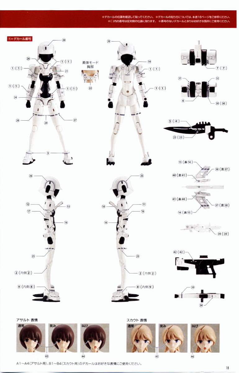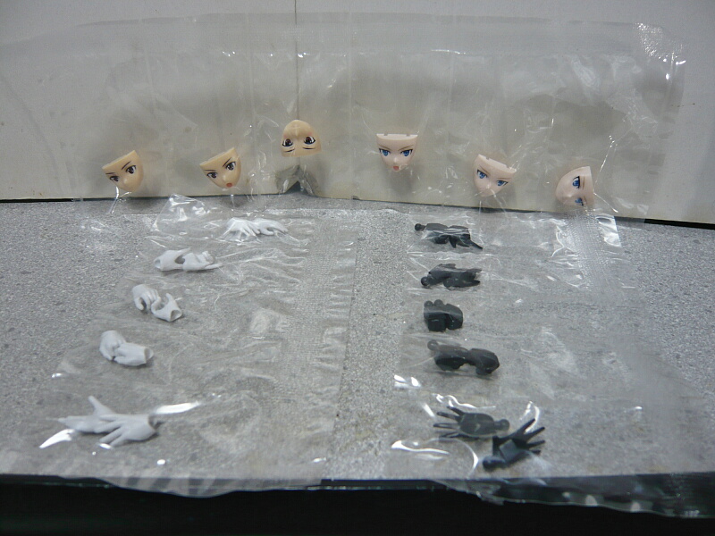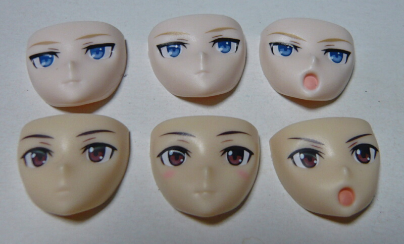 顔は肌色2色で各3種類。上(スカウト用)は同じものが2つあるように見えますが一応左が微笑顔、中央が通常顔となります。微妙に口元が違い、下(アサルト用)のようにチークが入っていないので見分けにくいです。