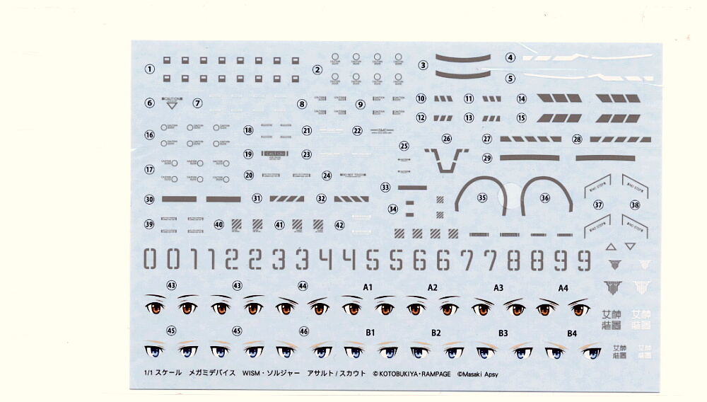 デカール。武装パーツに貼ると思しき軍用機のコーションマークのようなデカールが多量にあります。