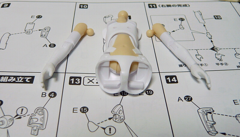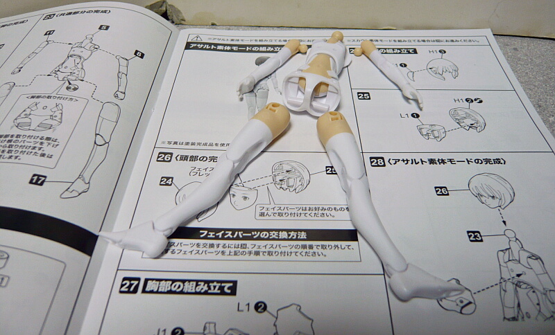 今回のものは胴体から組み始める事になります。これまでにないほどの関節パーツの集合体となっています。肌色はアサルト(少し黄色掛かった肌色の方)準拠で組んでいます。