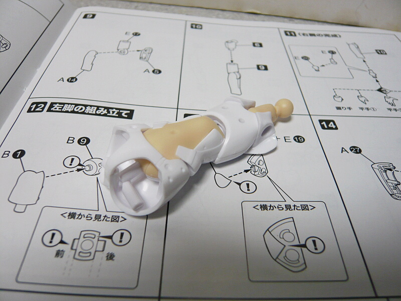 股関節のパーツの向き間違えてるな・・・太もも内の回転軸になるパーツは上写真だと肉抜き穴が露出していますが、肉抜き穴が無い側が露出するのが正しい。直すのは簡単ですけども。