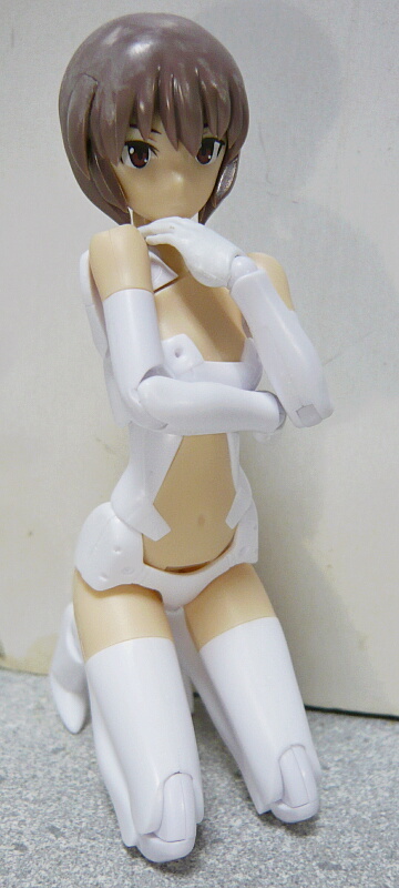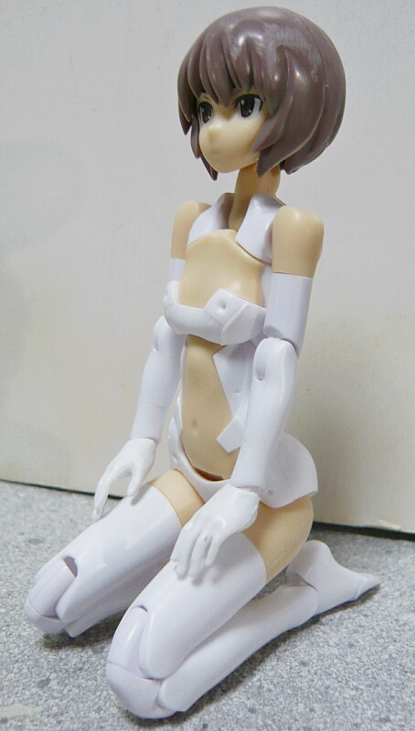 肩は胸部の上で正面まで向くようになっており、肩の動きはかなりの自由度があります。股関節はFAGマテリアと同等で胡坐も普通に組む事ができます。