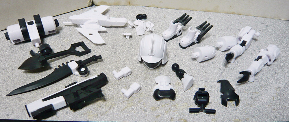 手首パーツは白がFAGマテリアのものに似た手首ジョイントを介する前提のもの、黒はFAG轟雷のものに似たボールジョイント一体で手の甲に装甲のモールドがあるタイプ。