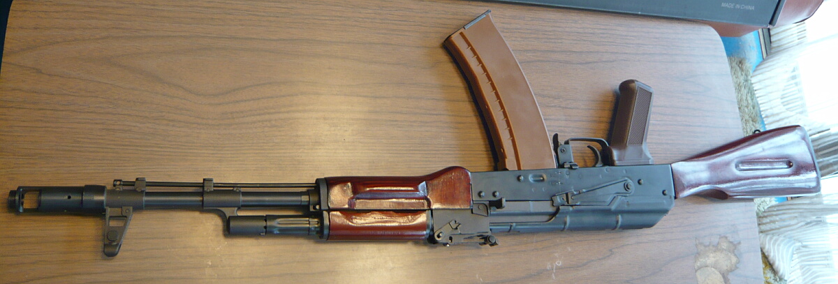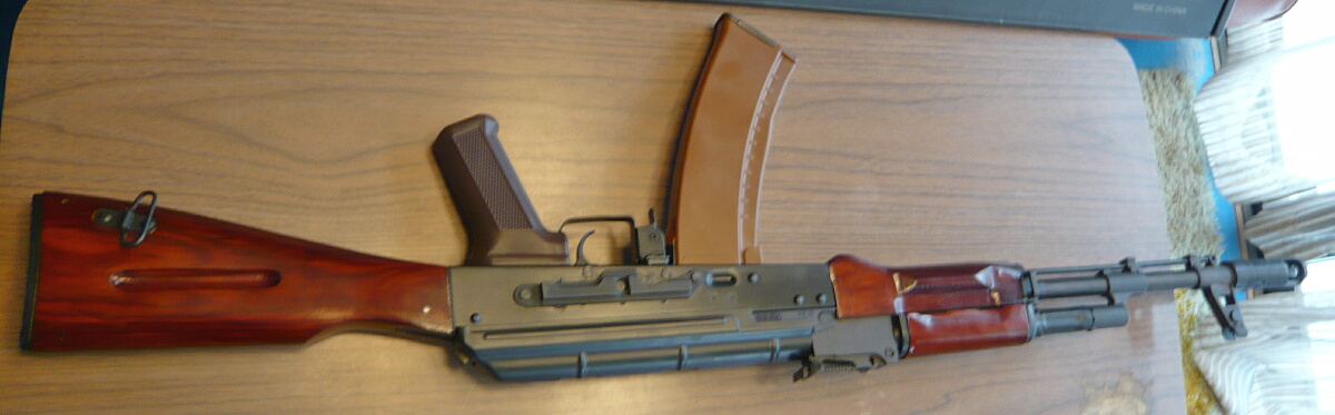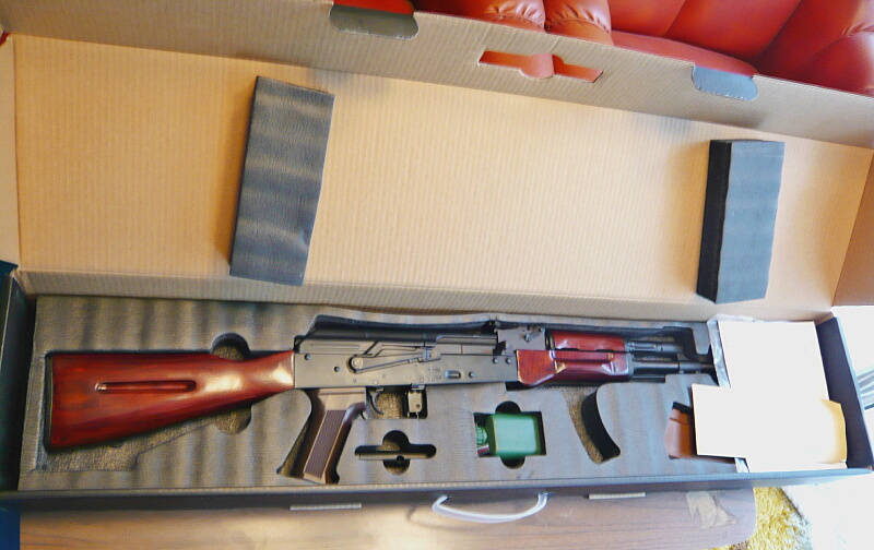 開封。前述のようにモノはAK-74N。ストックとハンドガードが木製であるAK-74の初期型にサイドマウントを装着したモデルとなります。