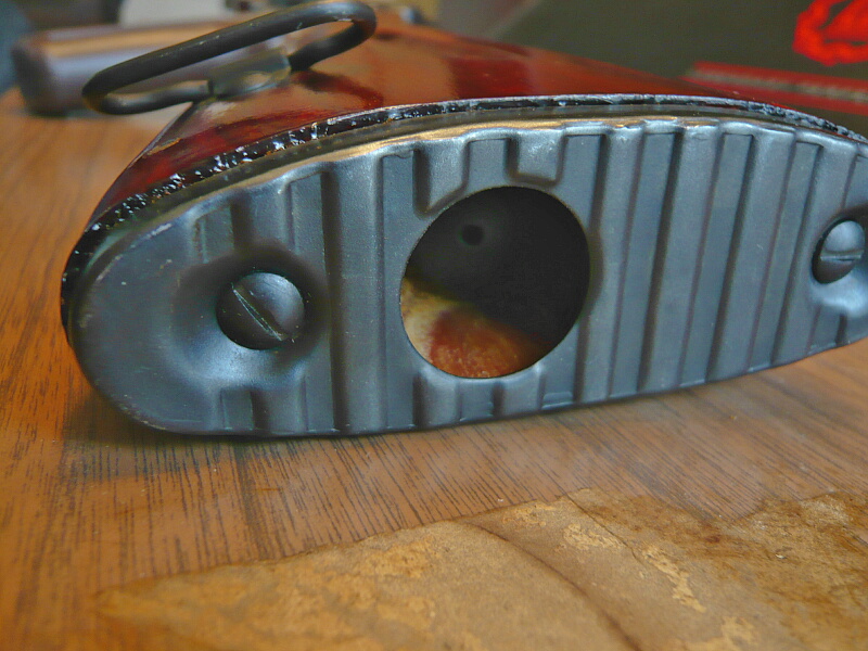 指を突っ込むと内部は少し上に傾いたトンネルになっており、奥にコイルスプリングがあります。クリーニングキットを押し込んでもスプリングのテンションで出てくる仕組みになっています。クリーニングキットを押し込みきれば窓は閉じて格納状態を維持し、再び取り出す時は窓を押し込めばクリーニングキットが出てくるハズですが、フリクションがあってあまりスムーズではありません。
