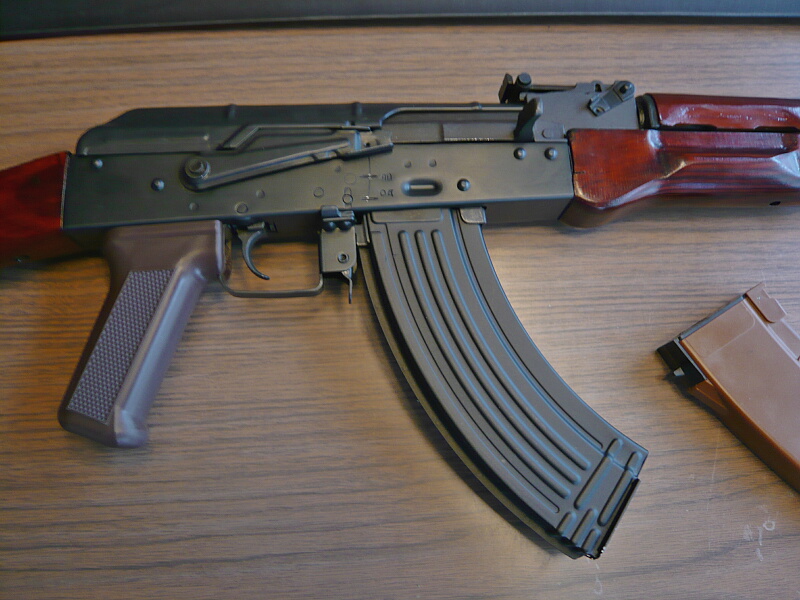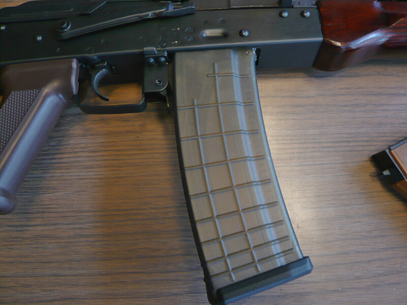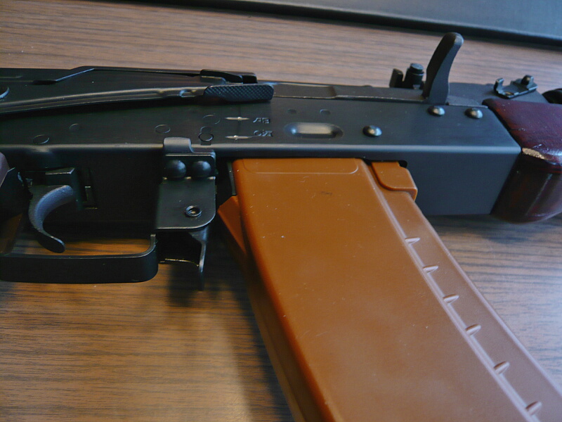 標準のマガジンは5.45mm×39タイプの茶色い樹脂製マガジン。