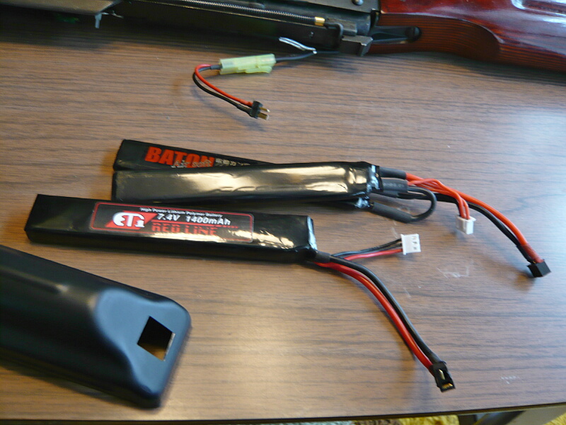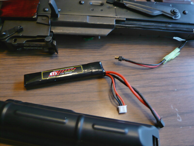 800mAh、ウチにある普通の電動ガン用では一番小さいやつ。これより小さいのは電ハン用しか無いぞ。