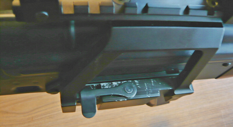 後ろ側をマガジンキャッチに掛けます。スムーズにしっかりと着脱ができますが、左右へは結構グラグラしています。ただしここは実銃もそうなのでこれはこれで正しい。