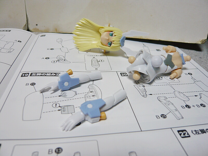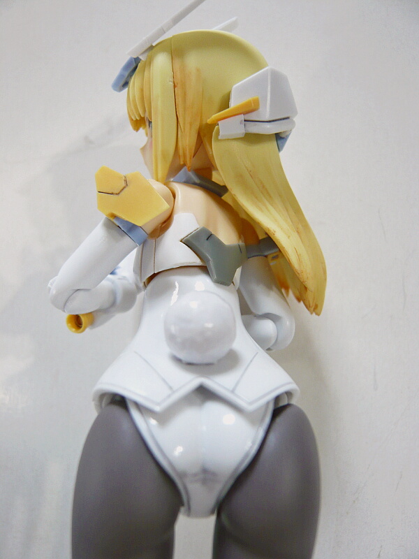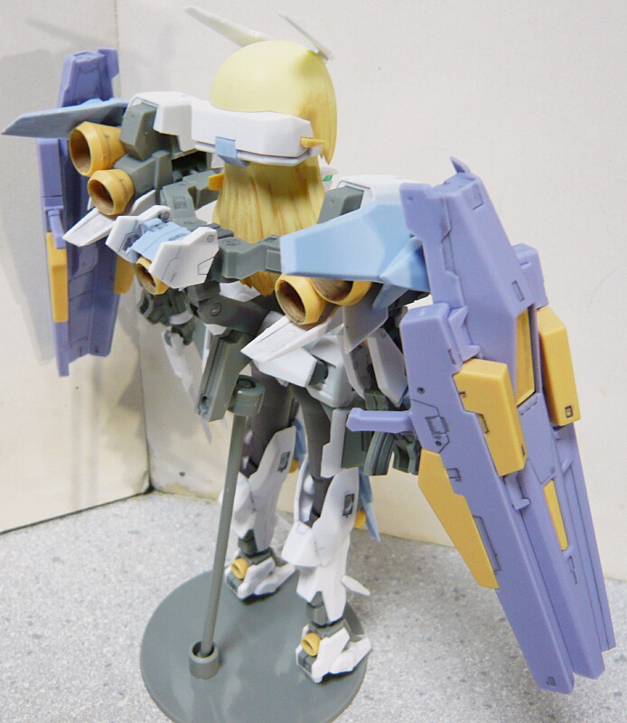 可動部分が多く、よく動くのですが髪が背負い物と二の腕のパーツに干渉して首を左右に動かしにくい・・・