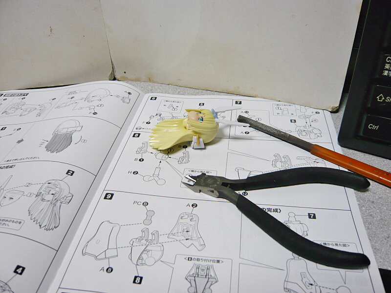 ランナーを洗浄し水を切って乾燥させたらいよいよ組み立て。無塗装パチ組みならニッパーとヤスリ、あとカッターがあれば十分。