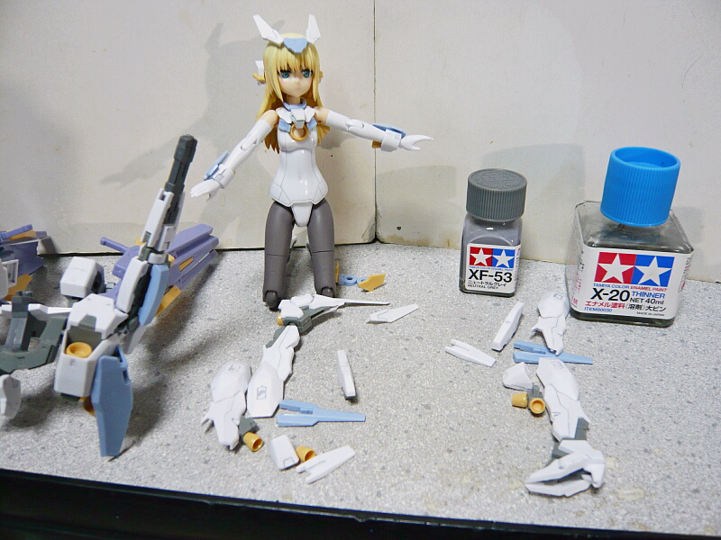 さて今回は塗装、なのですがこのFAGバーゼラルドは成型色で完璧に色分けされているので実は部分塗装すら必要なく、せいぜいコーティングとスミ入れくらいしかする事がありません。
