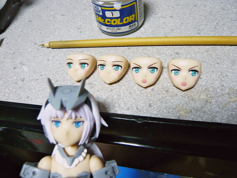 もうひと味、頬のチークにハイライトを入れておきましょうか。出荷時に塗装済みとなっていたFAGアーキテクトの顔を参考に、白で小さく点を打ちます。