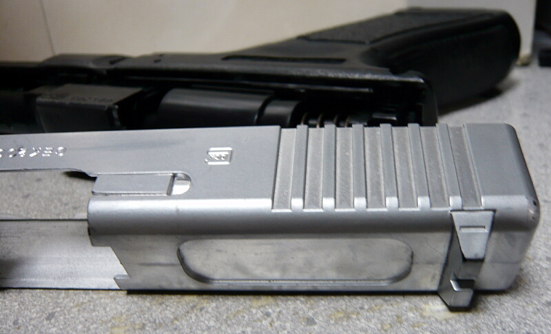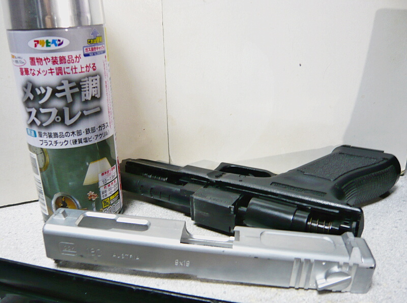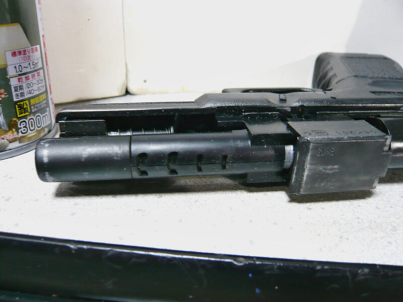 こちらが以前吹き付けたマルイ電ブロハンドガンG18Cのスライド。
