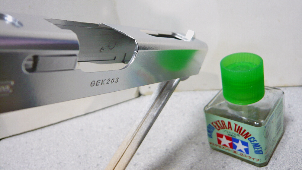 中性洗剤で洗い脱脂して乾燥後にスライドを塗装しなおします。