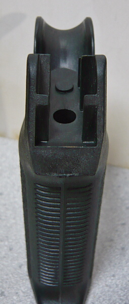 フィンガーチャンネルは無く、中指にはあまり負担が掛かりません。後面の手のひらに当たる部分は電動ガン用よりも細いため少し当たりが強いと感じるかもしれません。親指の付け根に当たる部分は後ろに延長されているため、ここのせいでセレクターやトリガーが遠いと感じる人もいるようです。