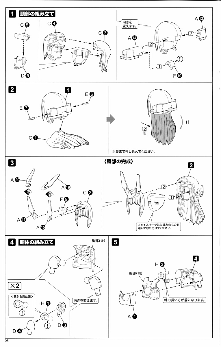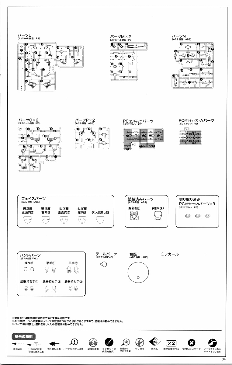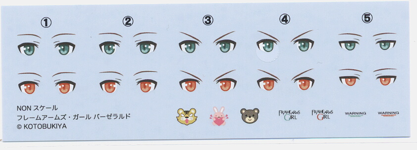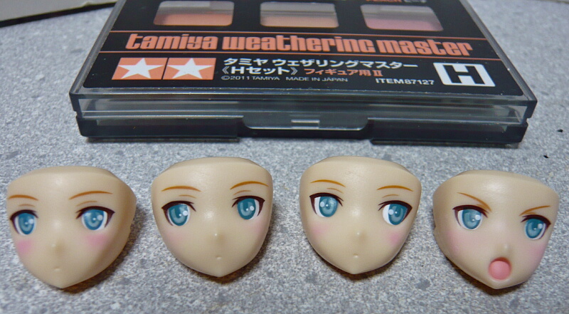 顔は4種と塗装されていないものが1つ。頬のチーク(頬紅)は塗装されていますがハイライト(頬紅の白い点)は入れられていません。