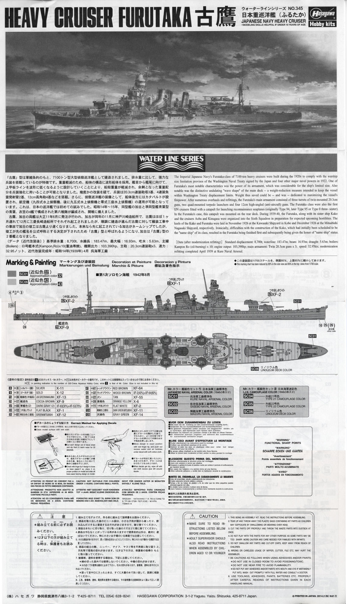 ハセガワ1/700ウォーターラインシリーズの重巡洋艦古鷹です。