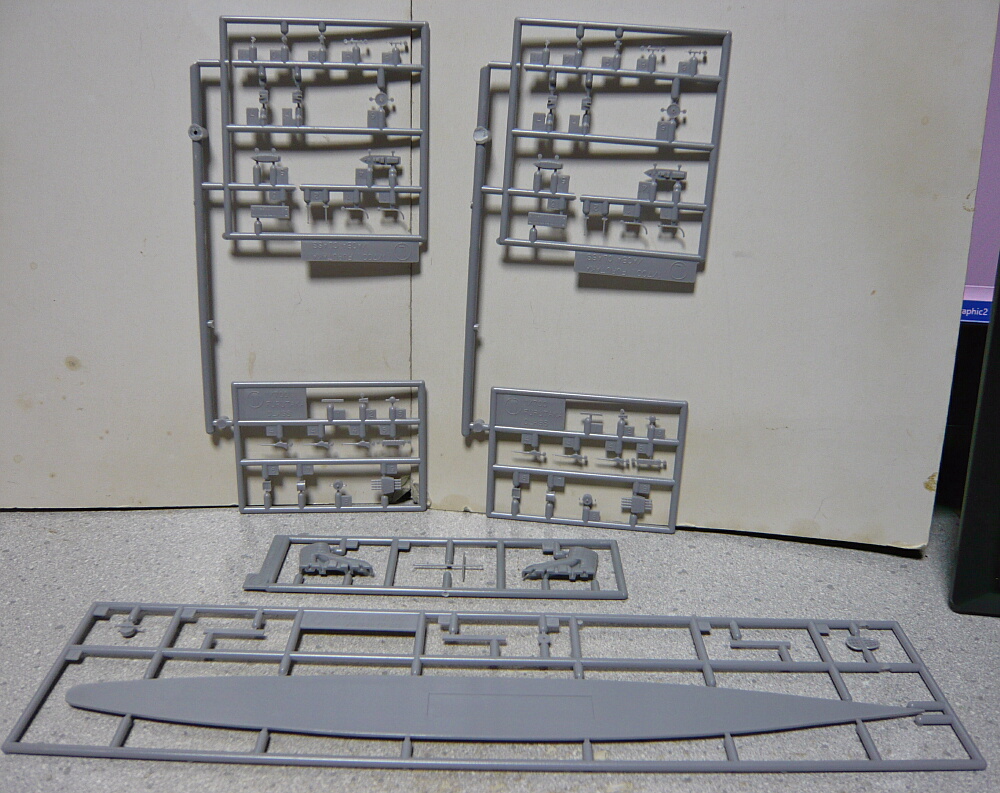 それでは製作開始。船体は左右分割ですが、ハセガワに多い艦首側の継ぎ目が片側にハッキリ出てしまうちょっと嫌な仕様。